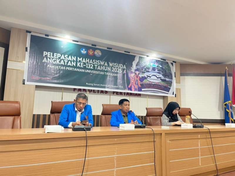 Fakultas Pertanian menggelar acara Pelepasan Mahasiswa Wisudawan Angkatan 132 pada hari Kamis, 23 Oktober 2025 bertempat di Ruang Senat Fakultas Pertanian. Acara ini menjadi momen istimewa bagi para mahasiswa yang telah menyelesaikan masa studinya dan siap melangkah menuju dunia profesional.