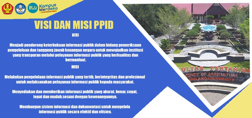 PPID FAPERTA UNTAD ( Pejabat Pengelola Informasi dan Dokumentasi Fakultas Pertanian Universitas Tadulako) Yang berfungsi sebagai penghubung antara fakultas dengan masyarakat atau pemohon informasi, dengan tujuan mendorong transparansi, akuntabilitas, dan pelayanan publik yang baik dalam pengelolaan informasi akademik, administratif, keuangan, serta kegiatan lainnya yang berkaitan dengan fakultas.