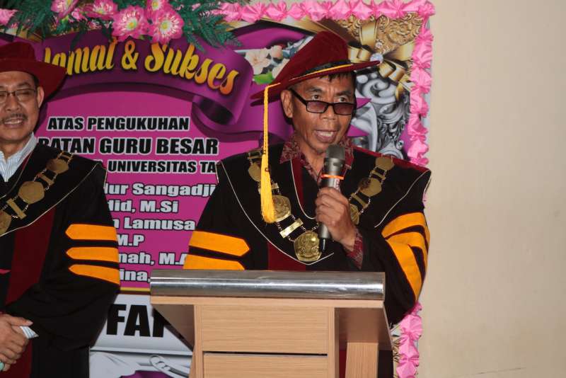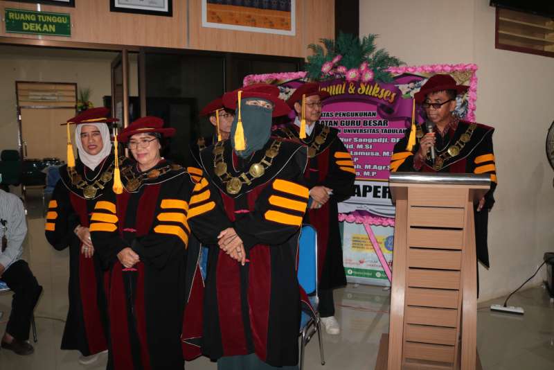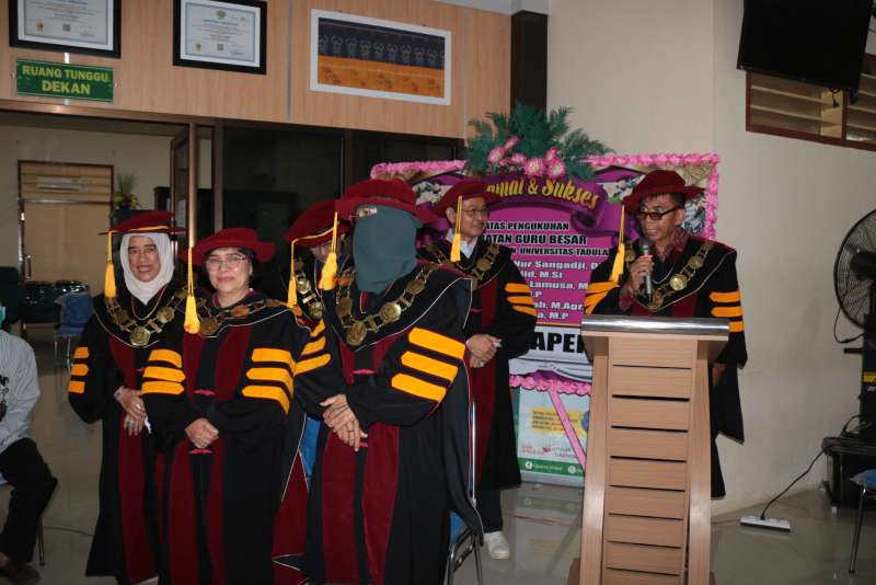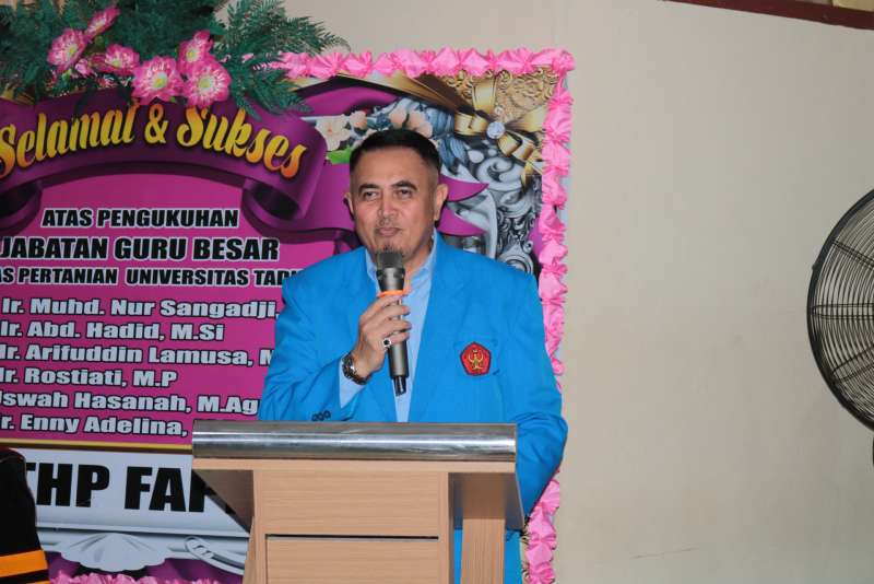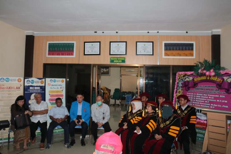 Selasa, 21 April 2026 - Fakultas Pertanian menggelar acara syukuran atas bertambahnya enam guru besar baru sebagai bentuk rasa syukur sekaligus apresiasi atas capaian akademik tertinggi yang diraih para dosen. Kegiatan ini berlangsung khidmat dan penuh kebersamaan, dihadiri oleh pimpinan universitas serta sivitas akademika. Enam dosen yang resmi menyandang gelar profesor tersebut adalah Uswah Hasanah, Abd. Hadid, Muhd. Nur Sangadji, Rostiati, Enny Adelina, serta Arifuddin Lamusa. Penambahan ini menjadi tonggak penting dalam penguatan kualitas sumber daya manusia di lingkungan Fakultas Pertanian. Acara syukuran turut dihadiri oleh Rektor Universitas Tadulako beserta jajaran Wakil Rektor I hingga IV, Ketua Senat Fakultas, para dosen, serta tenaga kependidikan Fakultas Pertanian. Kehadiran pimpinan universitas menjadi bentuk dukungan atas pencapaian akademik yang diraih para guru besar. Dalam sambutannya, pihak rektor menyampaikan harapan agar para profesor yang baru dikukuhkan dapat terus berkontribusi dalam pengembangan ilmu pengetahuan, khususnya di bidang pertanian, serta menjadi motor penggerak dalam peningkatan kualitas pendidikan, penelitian, dan pengabdian kepada masyarakat. Rangkaian acara diisi dengan doa bersama, penyampaian ucapan selamat, serta ramah tamah yang mempererat silaturahmi antar sivitas akademika. Momentum ini tidak hanya menjadi ajang syukuran, tetapi juga refleksi atas komitmen Fakultas Pertanian dalam mencetak akademisi unggul dan berdaya saing. Dengan bertambahnya enam guru besar, Fakultas Pertanian diharapkan semakin memperkuat perannya sebagai pusat pengembangan ilmu pertanian yang berkontribusi bagi kemajuan daerah maupun nasional.